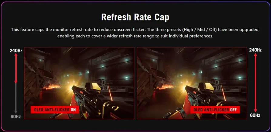 Компания добавила в новинку функцию Anti-Flicker в попытках снизить видимость мерцания на тёмных участках в играх при использовании систем адаптивной синхронизации и сохранила множество функций и технологий, встречаемых преимущественно в M-линейке. Из явных минусов — большая часть не самых приятных особенностей большинства W-OLED-панелей, о чём мы подробно поговорили в нашем отдельном материале.
