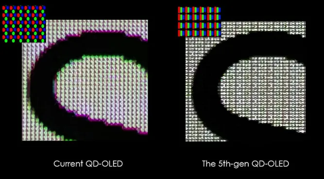 В январе 2026 года производитель представил панели QD-OLED Gen 5, в которых появляется то, чего долго ждали многие пользователи, посматривающие за развитием OLED: движение к классической субпиксельной геометрии (V-Stripe, то есть более предсказуемое вертикальное выравнивание RGB), изменение рабочего покрытия для снижения потери глубины чёрного поля в обычных условиях использования, а также продолжающееся развитие многослойных тандемных стеков.