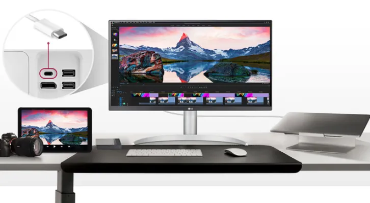 Самым доступным представителем класса выступает уже не новый LG 40WP95C-W, способный закрыть большую часть запросов продвинутой публики. Это первоклассное решение за свои деньги, обеспечивающее широкие возможности по подключению, среднюю точность заводской настройки (да, есть необходимость в калибровке), вполне качественное исполнение, а самое главное – широкую доступность на рынке. Используется изогнутая IPS-панель со значением 2500R – к такому уровню изгиба можно быстро привыкнуть и не испытывать дискомфорта практически в любой профессиональной деятельности.