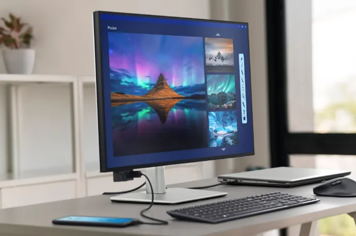 В качестве профессиональных решений мы перестали рассматривать и модели с диагональю меньше 27 дюймов и разрешением ниже WQHD (2560 x 1440 пикселей) – в середине 2025 года это должен быть минимальный набор для современного дисплея. Появилось чуть больше вариантов с разрешением 4К и 5К, а основная масса устройств продолжает придерживаться соотношения сторон 16:9.