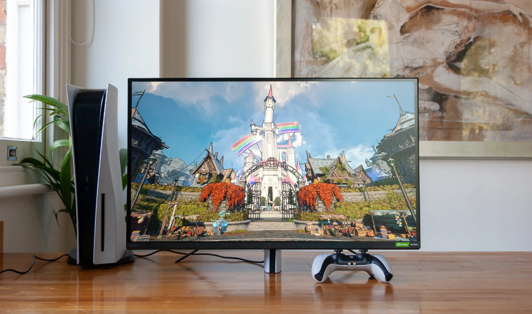 Любителям эксклюзива предлагаем рассмотреть Sony INZONE M9. Читая о нём в различных СМИ и на форумах, а также рассматривая макроснимки структуры матрицы, можно формально подтвердить использование именно Nano IPS панели от LG, но в какой-то специальной модификации: с чуть менее грубой полуматовой поверхностью защитной плёнки матрицы и 96-зональной FALD подсветкой. Монитор уникален своим дизайном и тем, что это один из первых игровых мониторов японской компании. Производитель делает ставку на пользователей игровой приставки Sony PlayStation 5, акценты на которую используются во внешнем виде монитора.