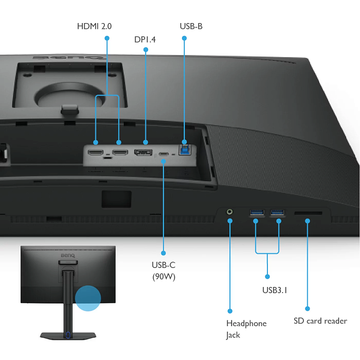 BenQ SW272Q - 27-дюймовый 2K-монитор Adobe RGB с мощностью USB-C 90 Вт предназначенный для фотографов.