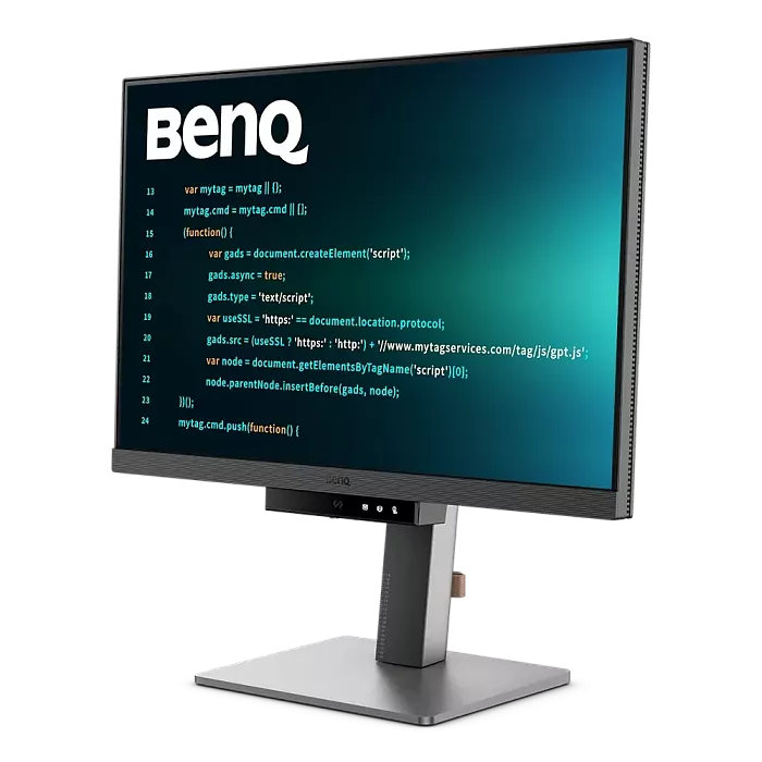 BenQ RD240Q - 24,1-дюймовый монитор для программирования с соотношением сторон 16:10 и высоким рабочим разрешением 2560 х 1600 пикселей. Используемая IPS панель поддерживает работу на частоте вертикальной развёртки в 60 Гц, имеет антибликовое матовое покрытие экрана. Пиковая яркость находится на уровне в 300 нит, коэффициент контрастности стандартный - 1000:1, углы обзора - 178 градусов в двух плоскостях. Немерцающая (Flicker-Free) W-LED подсветка обеспечивает полное покрытие цветового пространства sRGB. Для снижения нагрузки на глаза предусмотрен ряд настроек низкого уровня синего света (Low Blue Light) и функция «Защита в ночные часы».