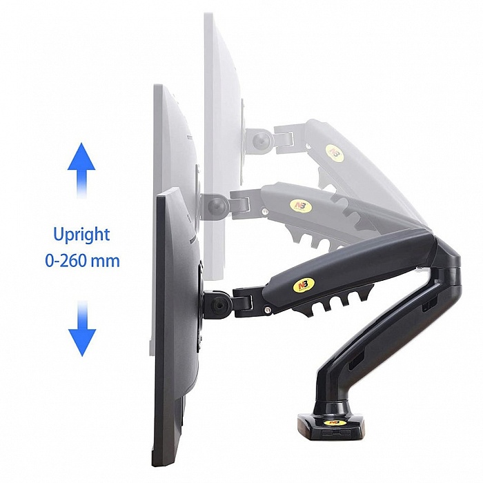 Всё это благодаря газовой пружине, располагающейся внутри корпуса кронштейна NB F80, именно она может зафиксировать монитор в любом положении и менять его не прилагая существенных усилий. Поворачивайте монитор вокруг совей оси на 360°, наклоняйте вверх и вниз, придвигайте или удаляйте от себя, поднимите монитор повыше или опустите пониже – всё это может кронштейн NB F80.