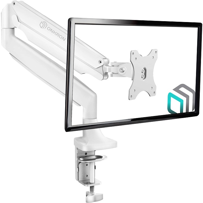 ONKRON G100-W - настольный кронштейн для монитора, представленный в белом цвете. Он выполнен по технологии газлифт и подходит для мониторов и телевизоров диагональю от 13 до 32 дюймов (33,02 - 81,28 см) и весом до 9 кг. Он поддерживает стандарты крепления VESA 75x75mm и 100x100mm. Механизм с возвратной пружиной и газовым амортизатором, располагающийся внутри корпуса кронштейна, даст возможность легко перемещать монитор в любую нужную вам позицию. ONKRON G100 поможет Вам оптимально организовать пространство и освободить место для документов и офисного оборудования на компьютерном столе. Этот стильный держатель станет хорошим решением для вашего дома или офиса.