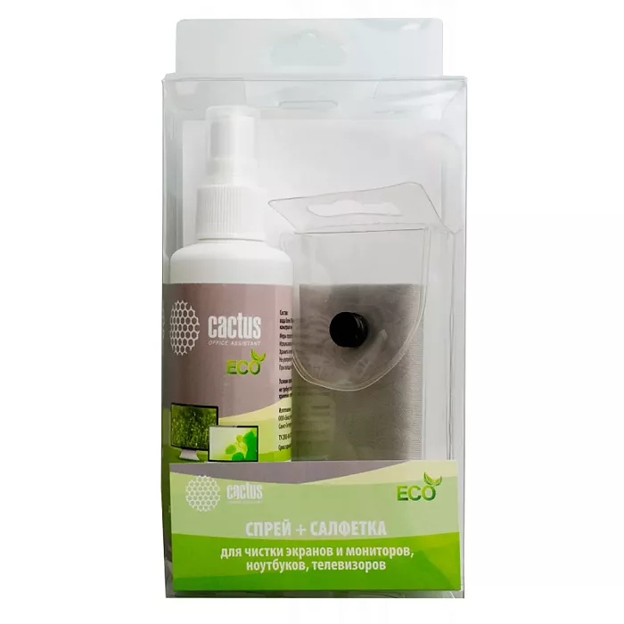 Чистящий набор (салфетки + спрей) Cactus CS-S3001E для экранов и оптики 1шт 18x18см 100мл