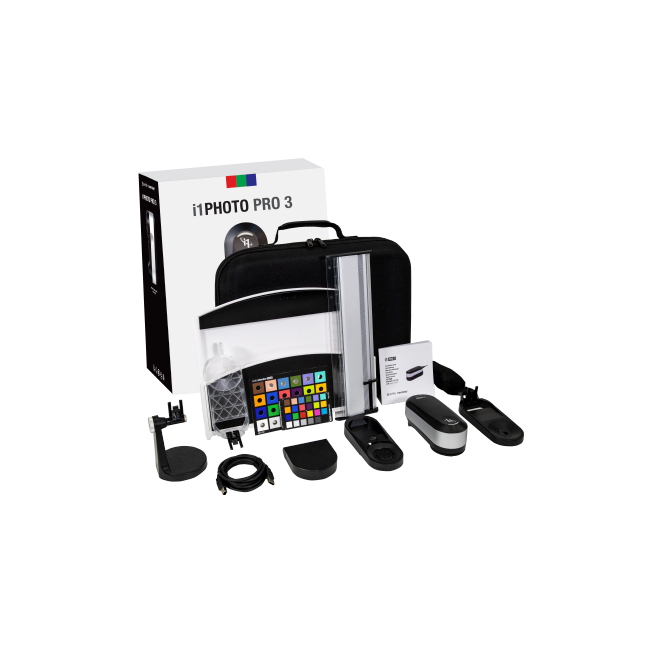 i1Photo Pro 3 включает спектрофотометр i1Pro 3; программное обеспечение i1Profiler для калибровки мониторов, проекторов, сканеров, RGB-принтеров; программное обеспечение для калибровки фотокамер ColorChecker, программное обеспечение PANTONE Color Manager; шкалу ColorChecker Classic [мини]; шкалу ColorChecker Proof, надежные аксессуары i1 (головка для измерения внешнего освещения, крепление на монитор, линейку для сканирования, подложку для сканирования, мишень для позиционирования при замере плашечных цветов, мягкий кофр для переноски).