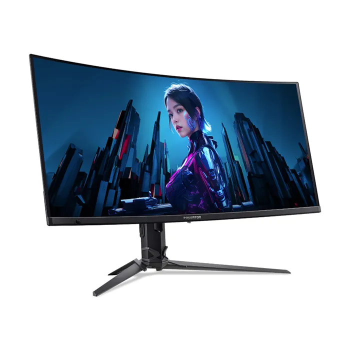 Acer Predator X34 F3 оснащен сверхширокоформатной QD-OLED-матрицей размером 34 дюйма. Модель имеет изогнутый дисплей с радиусом кривизны 1800R и работает при разрешении 3.5K (3440 x 1440 пикселей) с частотой обновления 3360 Гц. Дисплей использует 10-битную матрицу с 99% покрытием цветового пространства DCI-P3.