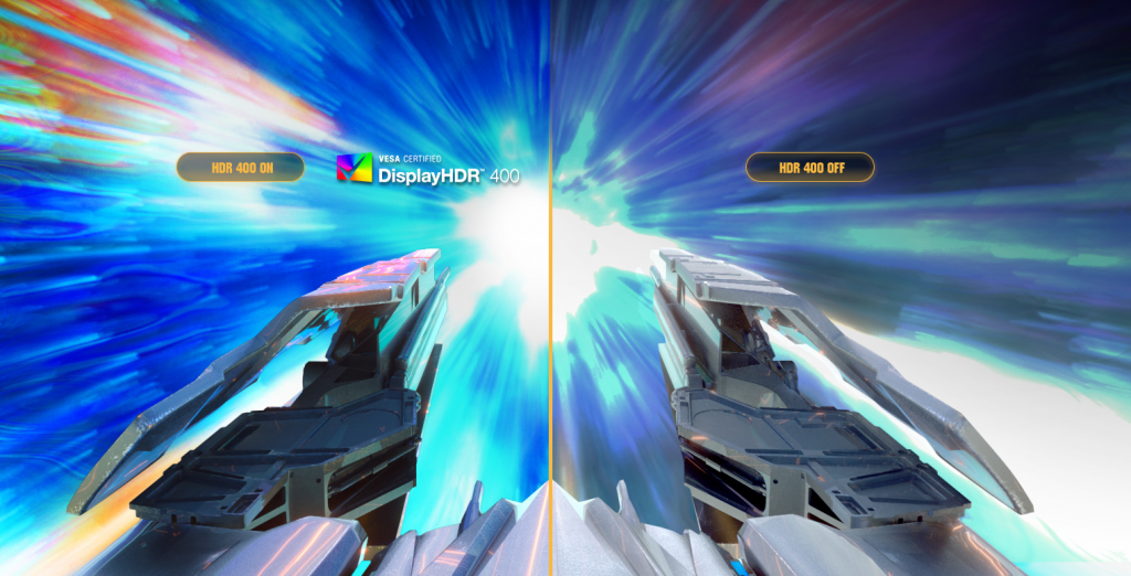 Поддерживается стандарт DisplayHDR™ 400, для обеспечения повышенной контрастности между темными и светлыми цветами.