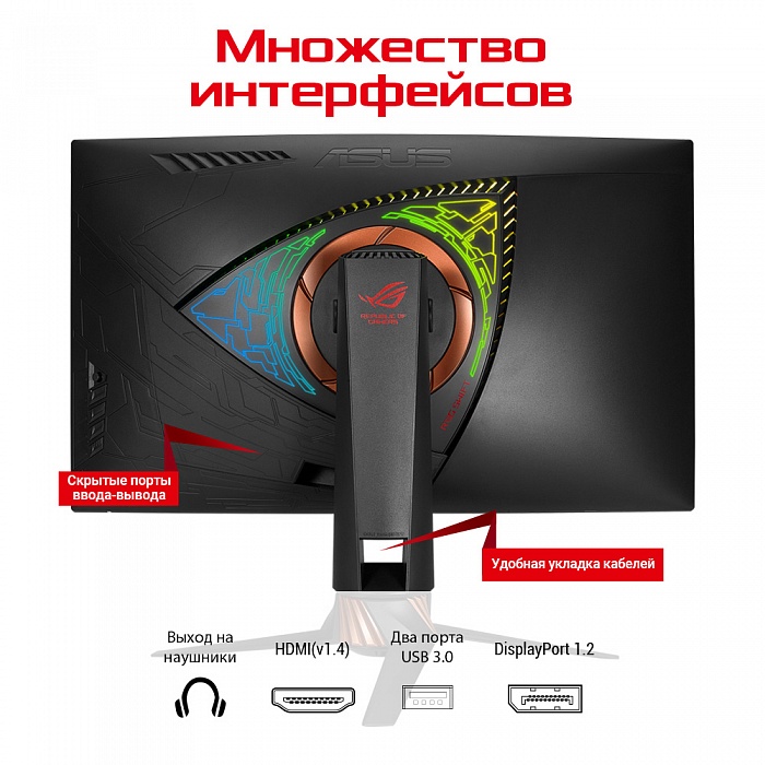 Важно также отметить поддержку технологии NVIDIA® G-SYNC™ которая, при подключении монитора к видеокарте NVIDIA, помогает снизить задержки и обеспечивает более плавный вывод изображение, что особенно актуально для игрового монитора. (Никаких «разрывов» изображения не будет.)