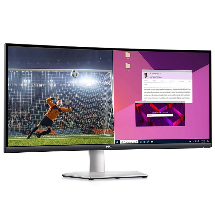 Dell S3423DWC - сверхширокий изогнутый экран 1800R с разрешением WQHD (3440 x 1440) и соотношением сторон 21:9 предлагает круговой обзор для более захватывающего просмотра с невероятной четкостью и мельчайшими деталями.