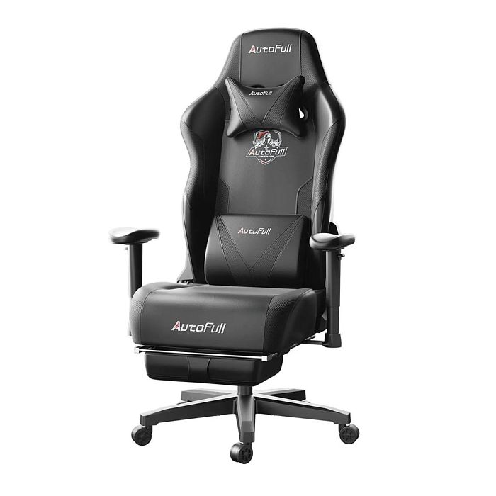 Игровое кресло AutoFull C3 из эко-кожи получило черную расцветку с логотипами бренда и две анатомические подушки для шеи и спины. Кроме этого, у него есть выдвижная подставка для ног. Регулировку кресла обеспечивает газлифт 4 класса, что достаточно для удерживания веса человека до 150 кг. Важной особенностью этого кресла являются его подлокотники, которые можно регулировать в трех направлениях. Спинка кресла обеспечивает наклон до 160 градусов. Это позволяет наиболее комфортно расположиться в кресле.