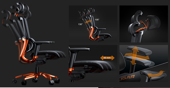Простая настройка высоты, наклона кресла и глубины сиденья обеспечивается системой регулировки на основе прочных кабелей. Вы также можете настроить подголовник и подлокотники, что позволит подобрать идеальную для вас посадку.
