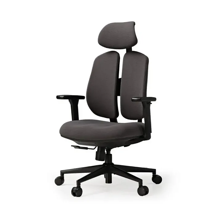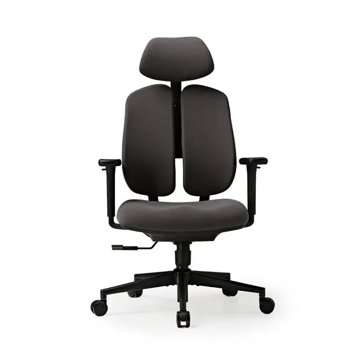 Адаптивная конструкция с двойной спинкой: зазор позвоночника распределяет давление, спинку сиденья можно наклонять влево и вправо. Подходит для длительной сидячей офисной работы а также для геймеров.