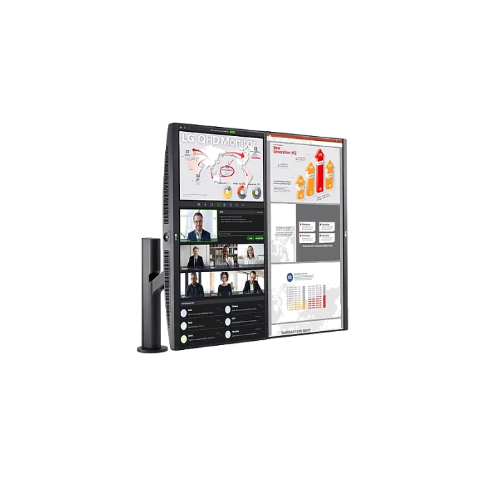 LG QHD Monitor Ergo Dual помогает повысить производительность, создавая гибкую рабочую станцию для лучшей и более удобной осанки.