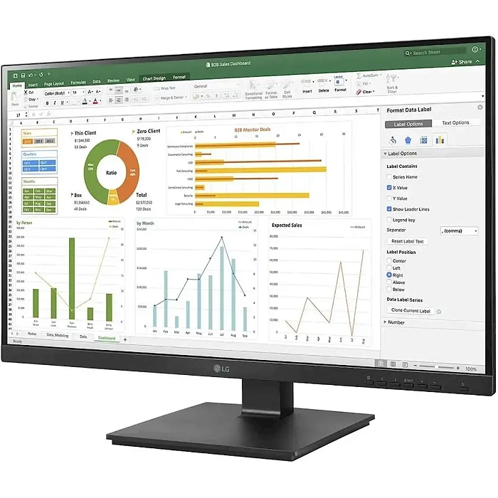 LG 24BN650Y-B - 23.8-дюймовый IPS монитор c разрешением Full HD. Благодаря превосходному качеству изображения и IPS матрице с углами обзора 178°, он обеспечивает превосходное изображение под любым углом, даже при совместном просмотре над диаграммами и отчетами.