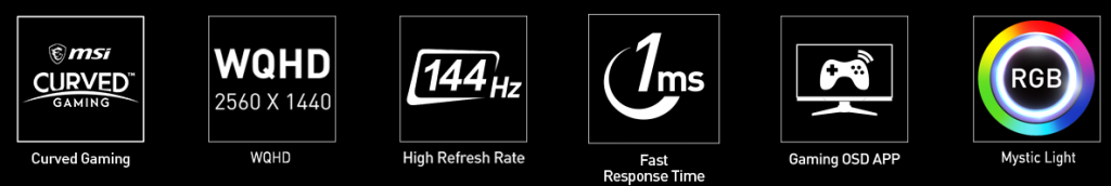 Ключевой особенностью игровых мониторов MSI является экран с изогнутой поверхностью, кривизна которого, равная 1500R, является оптимальной как для компьютерных игр, так и для обычных приложений. Но именно в играх такой экран проявит свои основные достоинства, ведь он обеспечивает гораздо более глубокое погружение в игру по сравнению с обычными.