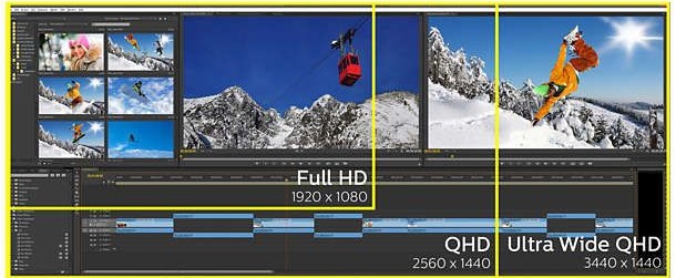 Широкий монитор Philips имеет в своей основе панели с разрешением 3440×1440, соотношением сторон 21:9 и 5 мс отклика. Благодаря вышесказанному, монитор получился очень универсальным, он прекрасно подойдет как для работы, так и для гейминга. Рассмотрим подробнее: