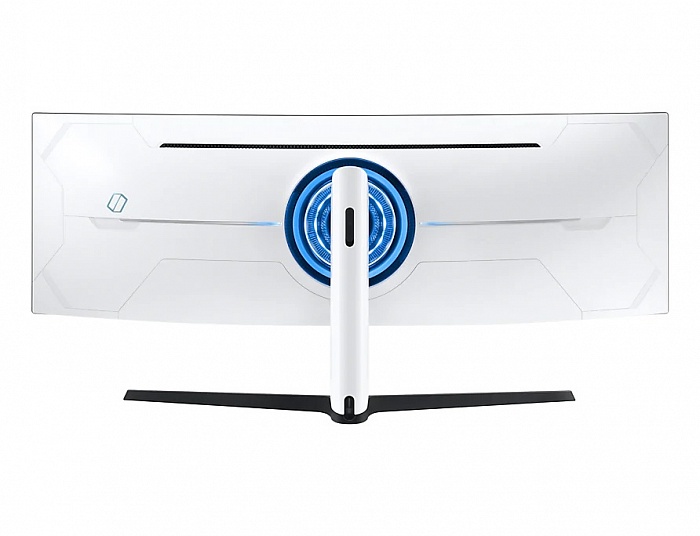 Samsung Odyssey G9 G9C49RG90SSI - 48.8-дюймовый SVA монитор с частотой обновления 240 Гц и откликом 1 мс. Каждый из мониторов Odyssey характеризуется радиусом кривизны 1000 мм (1000R) для максимально комфортного просмотра. Есть у новинок и поддержка технологии Adaptive Sync (FreeSync) при подключении через DisplayPort, а также они относятся к G-SYNC Compatible мониторам. Флагманский монитор Odyssey G9построен на изогнутой панели с соотношением сторон 32:9. Это монитор с необычным разрешением Dual Quad High Definition, которое составляет 5120×1440 точек. DQHD разрешение экрана позволяет на одном 49” экране реализовать рабочее пространство, эквивалентное двум QHD мониторам. Также монитор характеризуется пиковой яркостью 1000 кд/м2 и соответствует стандарту HDR1000. Выделяется новинка и своим дизайном: белая отделка здесь сочетается с большой областью с настраиваемой разноцветной подсветкой.