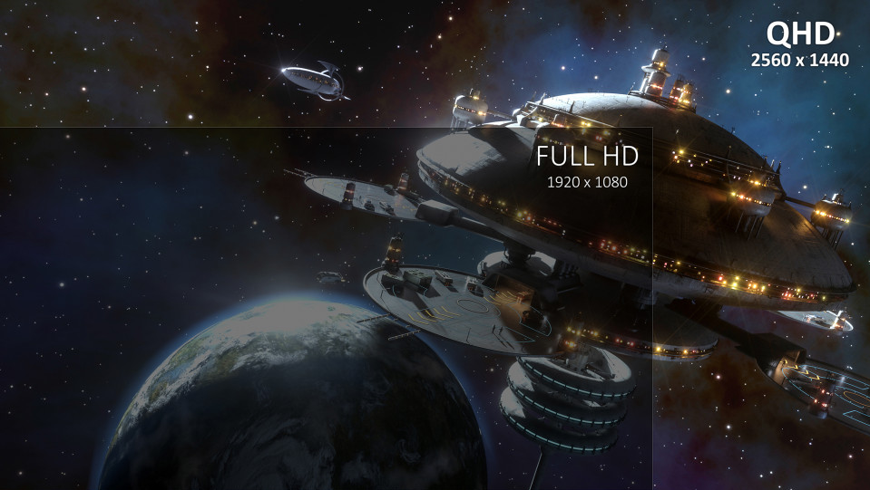 Разрешение QHD в два раза выше, чем у традиционного дисплея 1080p, что обеспечивает гораздо более четкое изображение без искажений и растяжений при сохранении того же соотношения сторон 16:9.