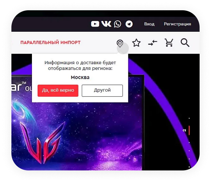 Необходимо выбрать город, в котором вы находитесь или планируете сделать покупку.