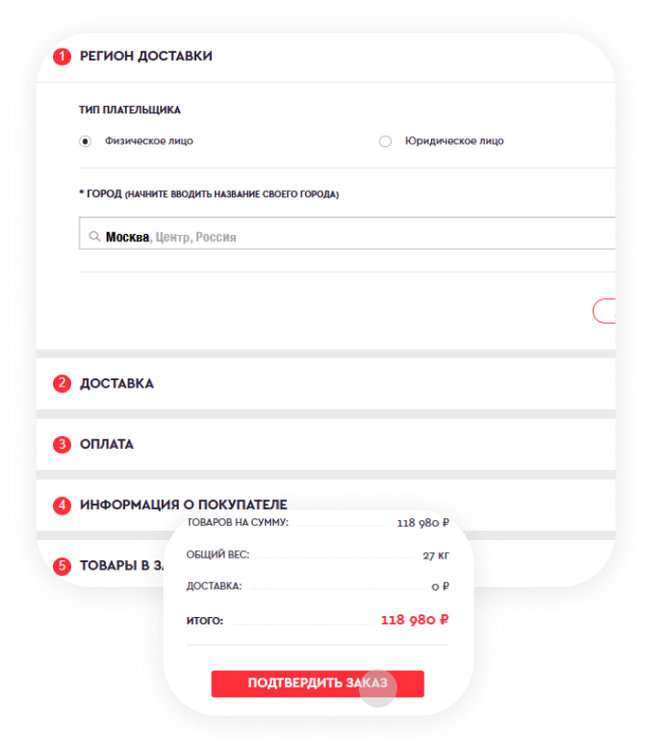 После заполнения всех необходимых полей нажмите на кнопку “ПОДТВЕРДИТЬ ЗАКАЗ”