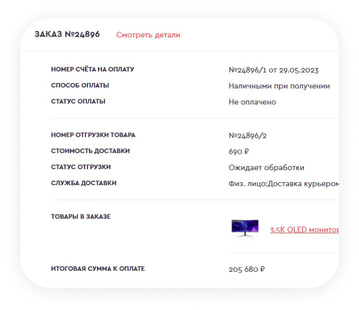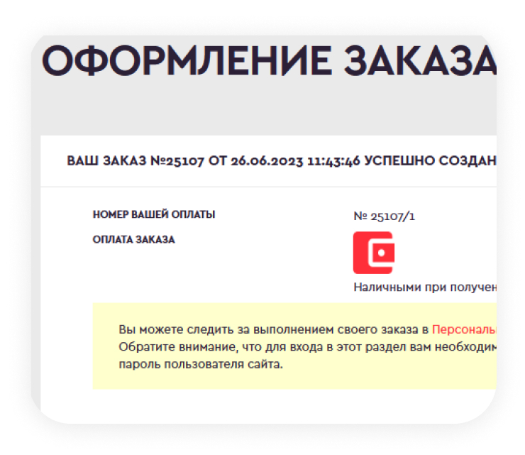 Более подробная информация о заказе будет находиться в разделе «Мои заказы»