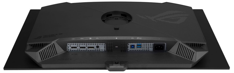 Монитор оборудован одним разъёмом DisplayPort 1.4 с поддержкой DSC, двумя портами HDMI 2.0, двумя USB Type-A Gen1 и 3,5-мм аудиовыходом. Дизайн подставки компактный и функциональный – в стиле ROG-серии: она позволяет регулировать высоту экрана над столом, а также наклон и углы поворота. При этом предусмотрено крепление VESA для размещения монитора на отдельном кронштейне.