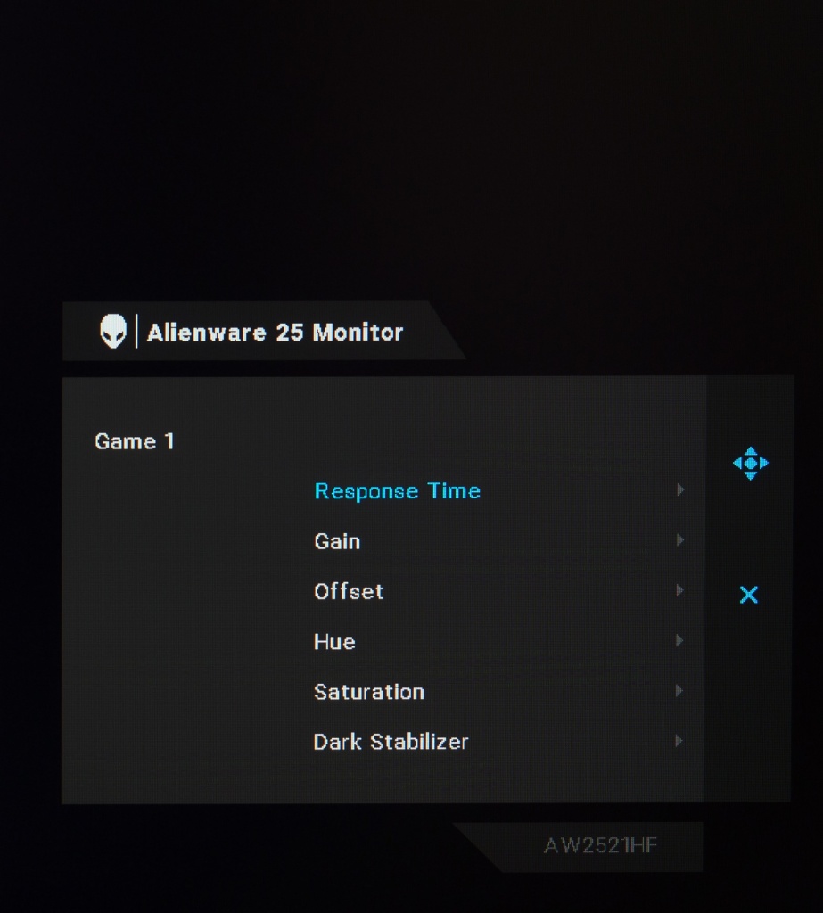 У новинки Alienware нет каких-либо встроенных датчиков (освещенности, приближения), но в меню есть пункт Dark Stabilizer, меняющий различимость крайних тёмных участков, что будет полезно для многих геймеров.