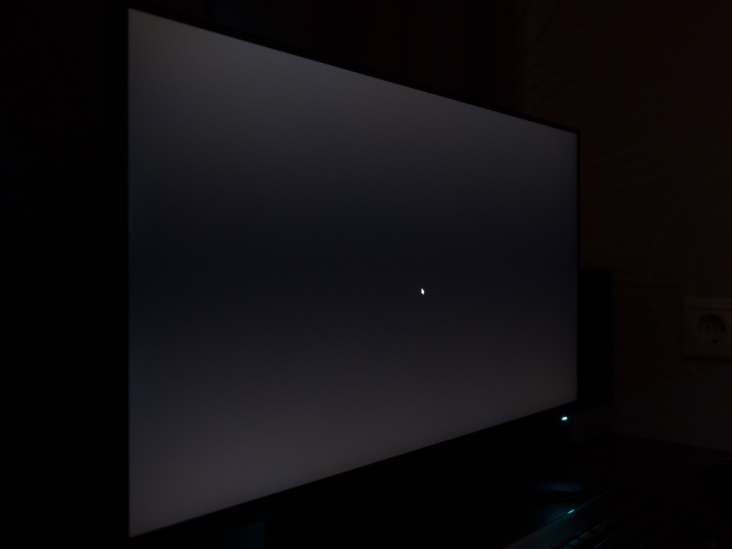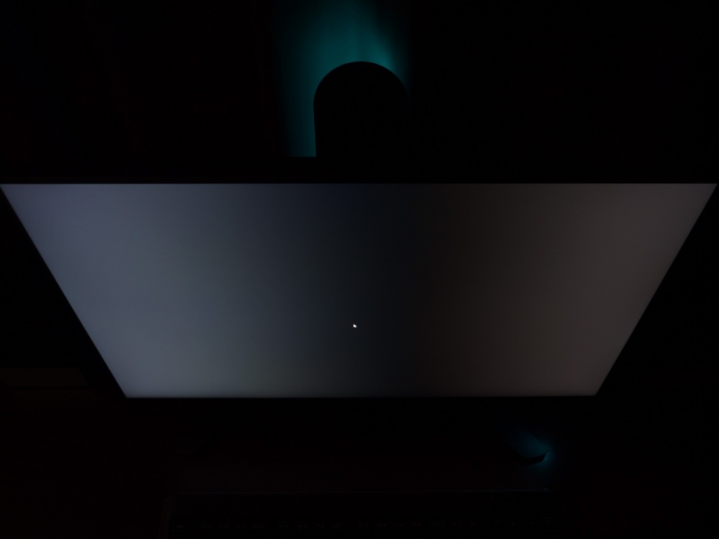 Теперь рассмотрим черный фон, оценив его «равномерность» по двум фотографиям, сделанным на разном отдалении от экрана (~70 см и 150 см), чтобы вы могли наглядно оценить влияние уже всем поднадоевшего Glow-эффекта и узнать реальную равномерность подсветки без его учёта.