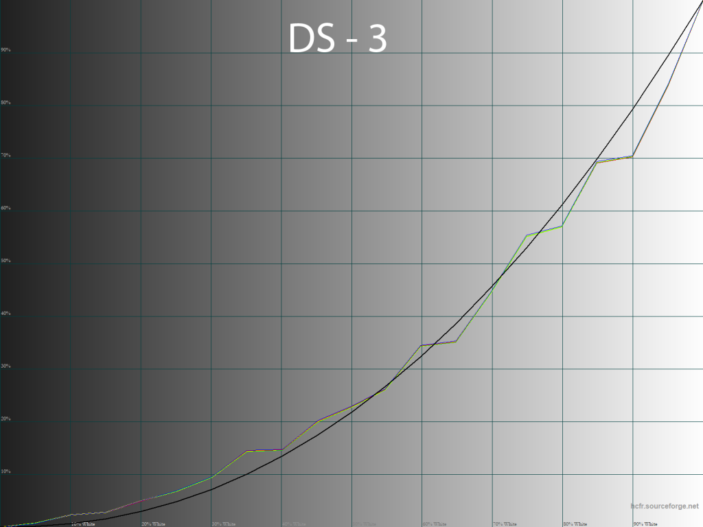 Герой обзора при стандартных установках показывает практически референсную точность установки гамма-кривых и соответствующий им правильный контраст картинки на экране. Нет проблем с балансом серого, отсутствует разброс между RGB-кривыми и лишь положение точек на CIE-диаграмме заставляет задуматься о ручной настройке, которая вместе с индивидуальным профилем никогда не помешает.