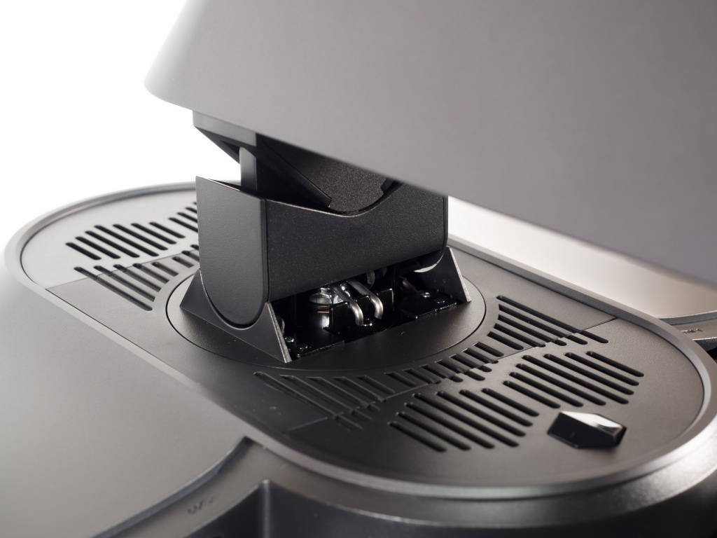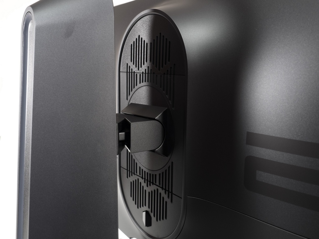 Центральная стойка крепится к корпусу монитора вполне стандартным способом - благодаря быстросъёмному механизму крепления. В случае необходимости модель можно повесить на VESA-совместимый кронштейн стандарта 100x100 мм. Для этого в месте крепления центральной колонны необходимо открутить четыре винта, которые в дальнейшем могут быть использованы совместно с выбранным кронштейном.