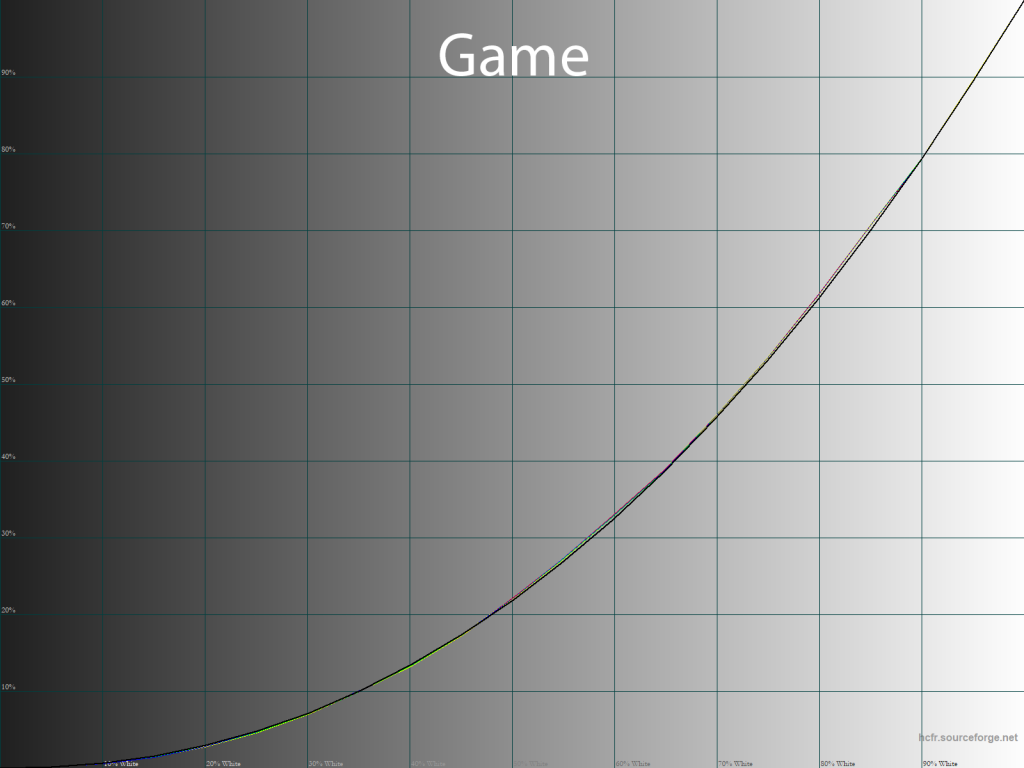 В любом режиме Game цветовой охват немного отличается от Standard, как и полученный коэффициент контрастности. Впрочем, это никак не влияет на точность установки гамма-кривых и высокую стабильность оттенков серого. Вы можете захотеть поменять цветовую температуру и с этим не возникнет проблем, ведь регулировка RGB Gain в пресетах Game присутствует в полном объёме, а не как раньше – только в Custom Mode.