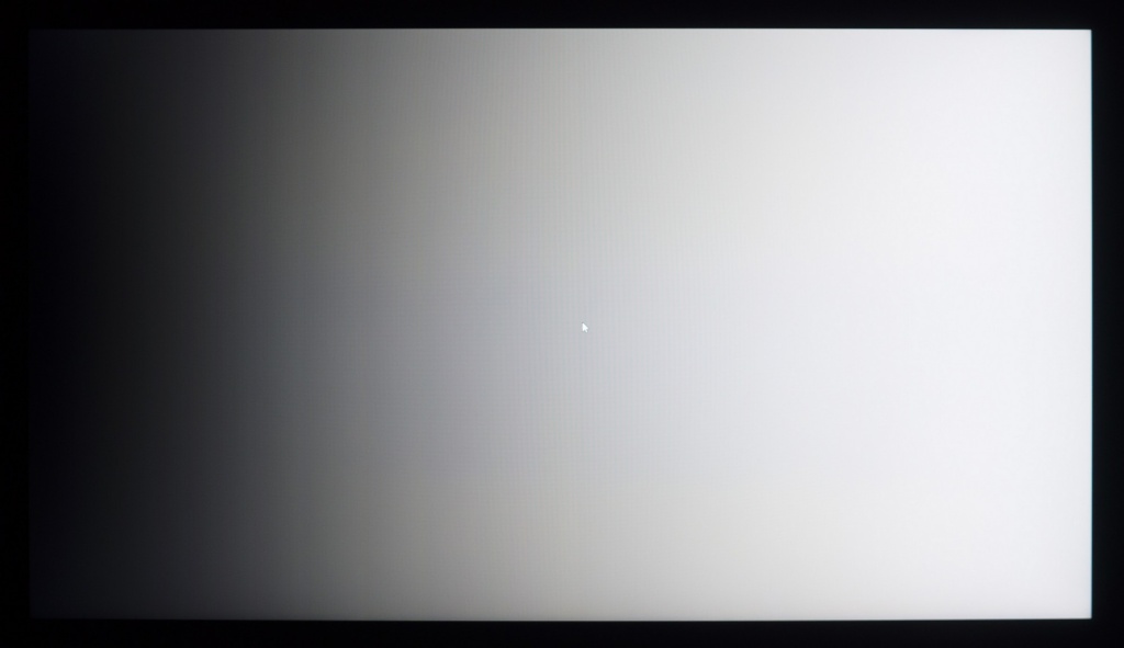 Фотография выше демонстрирует белое поле с минимальными коррекциями в графическом редакторе для более наглядного представления происходящего на экране с точки зрения равномерности светлого поля. Разница по яркости между центральной зоной, краями и углами панели хорошо видна.