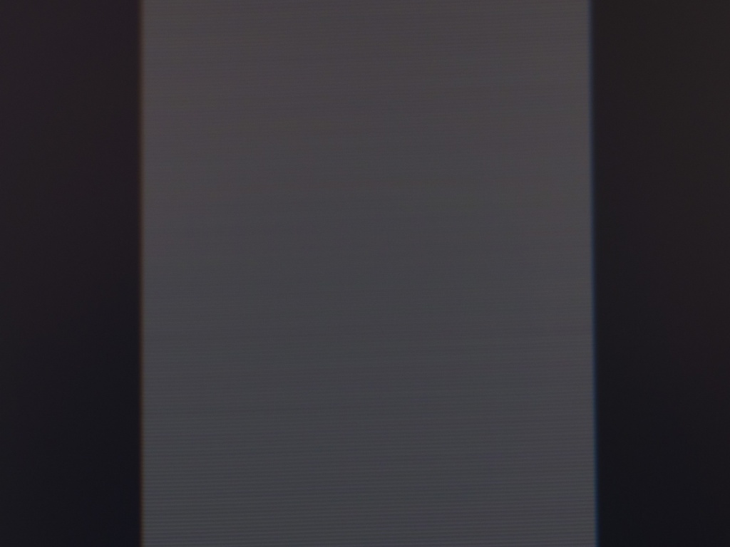 В первую очередь видна классическая структура пикселей для современных IPS панелей. Используемая поверхность достаточно грубая, что видно по микродефектам на плёнке светофильтров. Кристаллический эффект достаточно хорошо заметен при обычных рабочих условиях и усиливается при взгляде сверху или снизу. К сожалению, такое положение дел продолжает развиваться среди небольших IPS-дисплеев, что не скажешь про 27-дюймовые решения и модели с ещё большей диагональю.