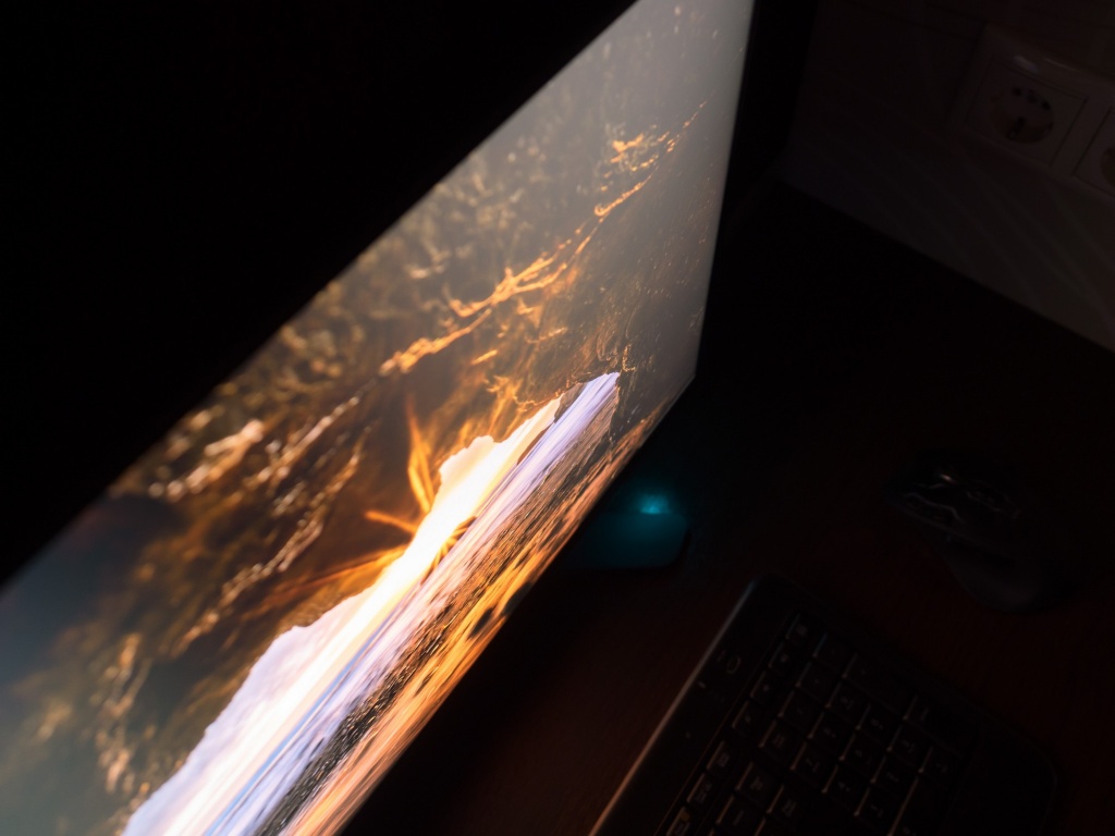 Glow-эффект, в прямом понимании этого термина, проявляет себя на цветных изображениях при взгляде под большим углом, стоя над монитором. Однако, таких резких изменений картинки, как в случае с *VA матрицами и тем более TN+Film, вы здесь не увидите. По фотографиям можно наблюдать появление пелены на трети-четверти изображения с ярко выраженным оранжевым либо холодным оттенком (зависит с какой стороны смотреть на экран), что является абсолютной нормой.