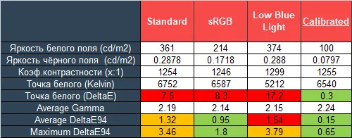 При переходе к основному режиму для снижения нагрузки на глаза Low Blue Light, монитор возвращается к широкому цветовому охвату, а общие результаты оказываются даже чуть выше, чем при заводских настройках. Правда, работать вы в нём всё равно не сможете – уж слишком он «тёплый».