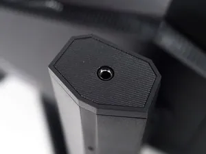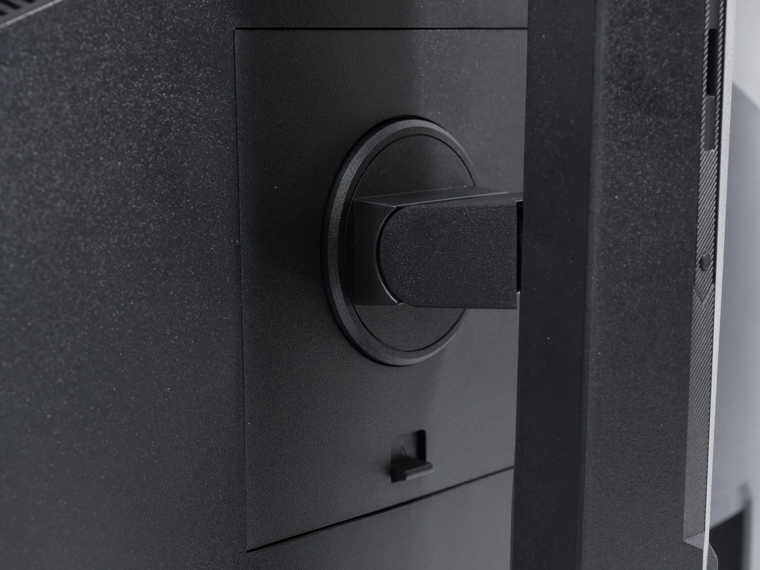 Центральная колонна за несколько секунд крепится к корпусу, а для её демонтажа необходимо перевести пластиковый фиксатор-кнопку вверх, после чего перед пользователем предстанет обычная VESA-совместимая площадка стандарта 100 х 100 мм с возможностью крепления сторонних кронштейнов.