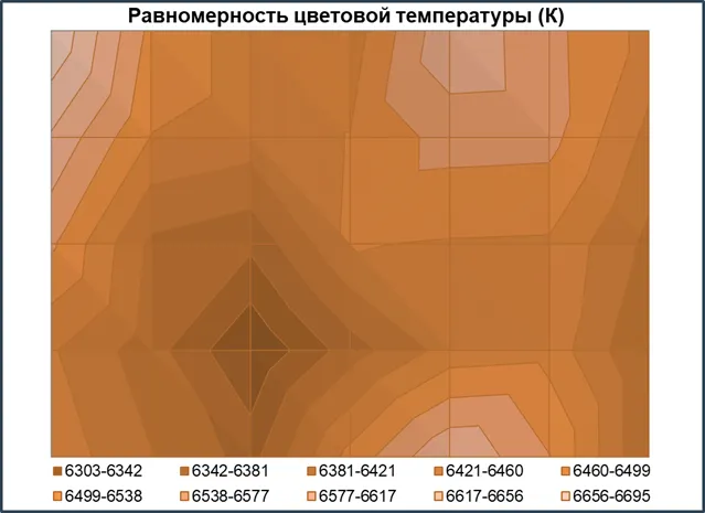 Теперь, наконец, перейдём к рассмотрению равномерности цветовой температуры на всей площади экрана.