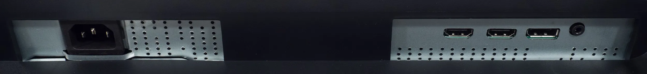Для подключения к ПК или ноутбуку производитель предлагает воспользоваться двумя HDMI 2.1 либо одним DisplayPort 1.4 с поддержкой системы сжатия сигнала DSC. Также есть 3,5 мм аудиовыход и пара встроенных динамиков общей мощностью 4 Вт.