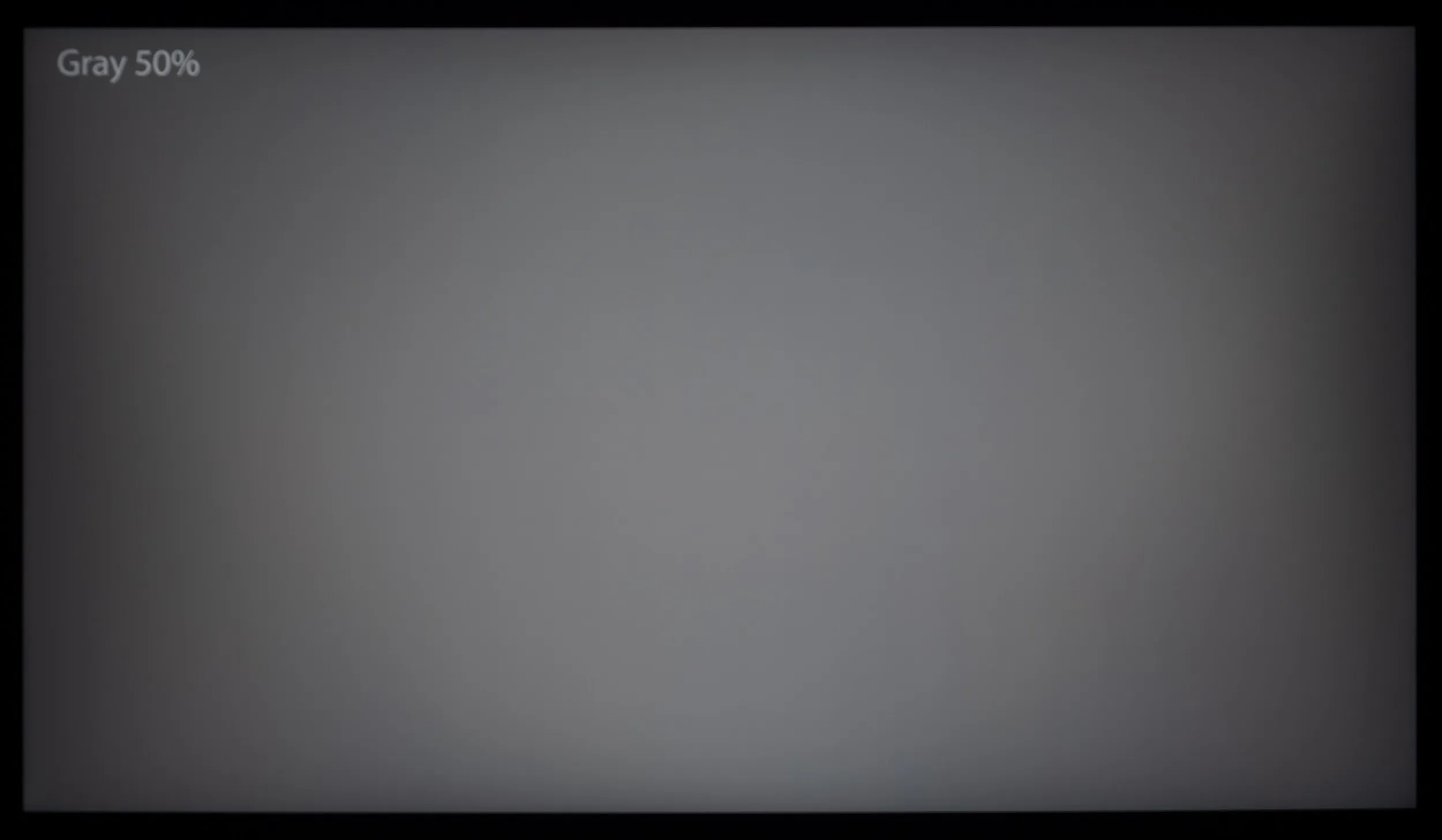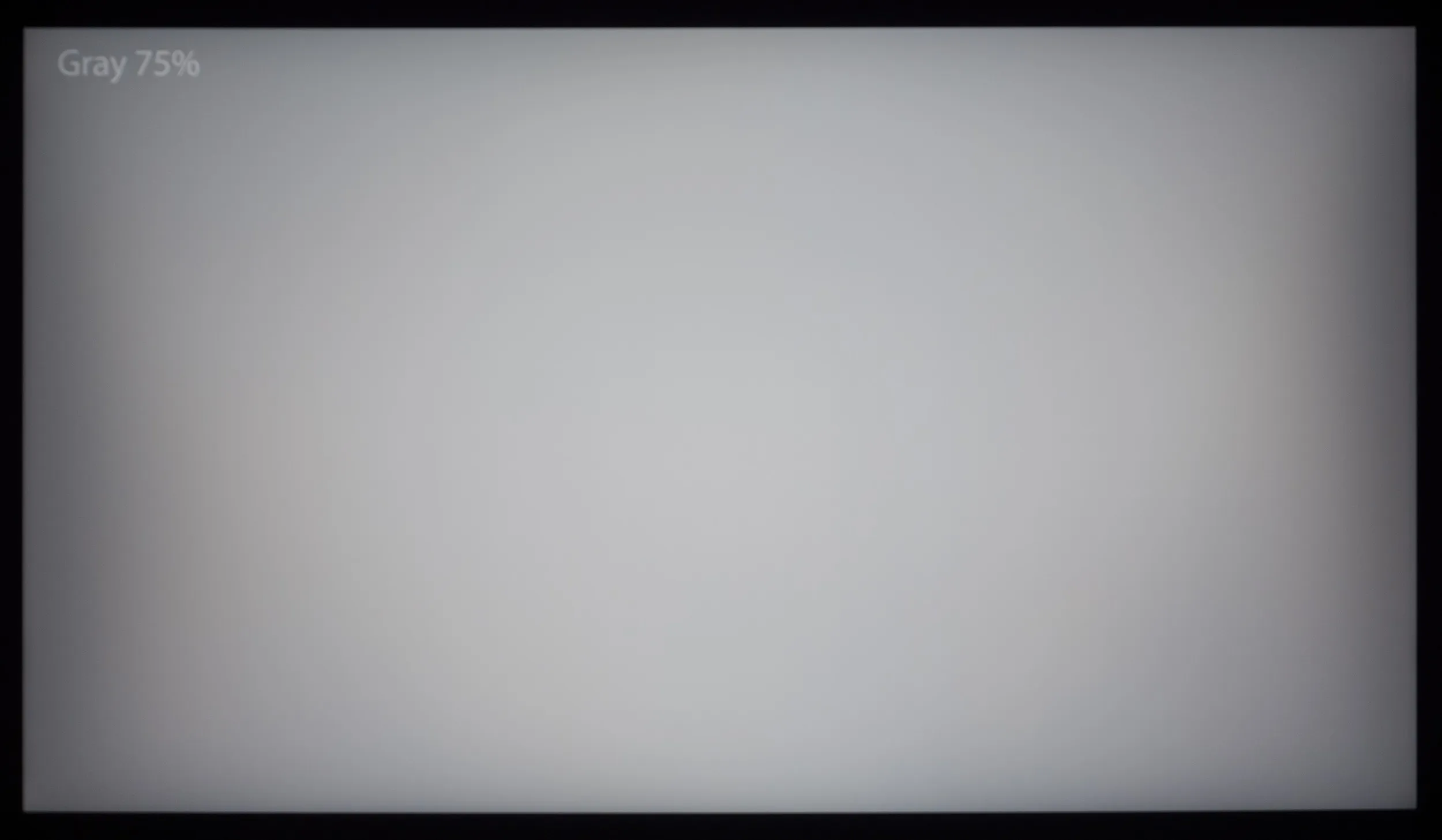 Фотография выше демонстрирует белое поле с минимальными коррекциями в графическом редакторе для более наглядного представления происходящего на экране с точки зрения равномерности светлого поля.