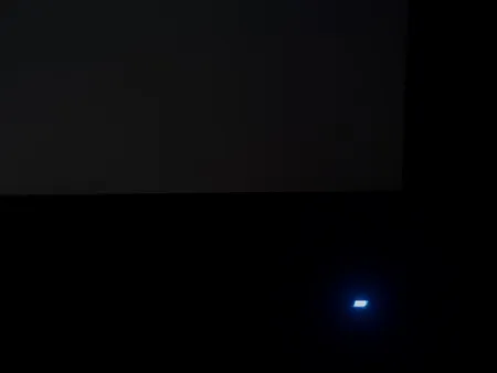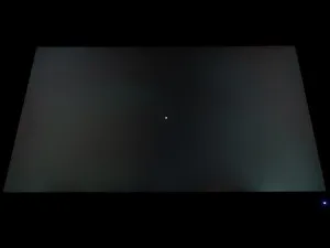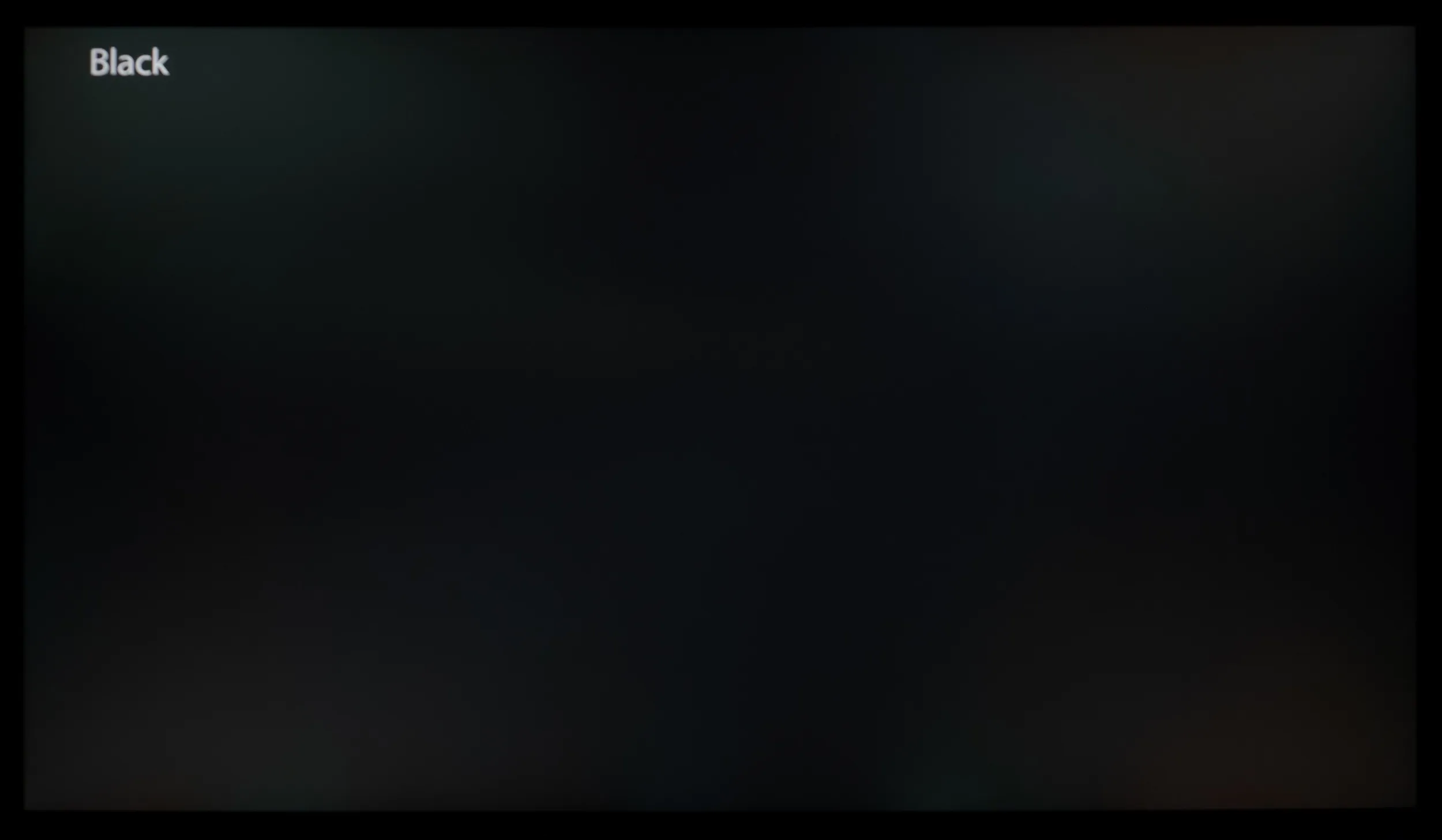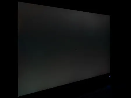 Теперь посмотрим на чёрное поле, оценив его «равномерность» по двум фотографиям, сделанным на разном отдалении от экрана (~70 см и 150 см), чтобы вы могли наглядно оценить влияние уже всем надоевшего Glow-эффекта и узнать реальную равномерность подсветки без его учёта.