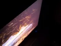 По фотографиям можно наблюдать появление пелены на трети-четверти изображения c выраженным фиолетово-розовым паразитным оттенком (видимо, это особенность использования красного фосфора в качестве модификатора спектра подсветки матрицы).