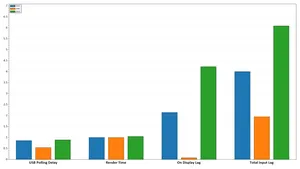 Говоря про игровые характеристики, производитель указал время отклика 1 мс по стандарту GtG и до 0,5 мс в режиме «вставки чёрного кадра» VRB, к которому не следует относиться серьёзно, тем более что режим не умеет дружить с системами адаптивной синхронизации (VRR).
