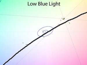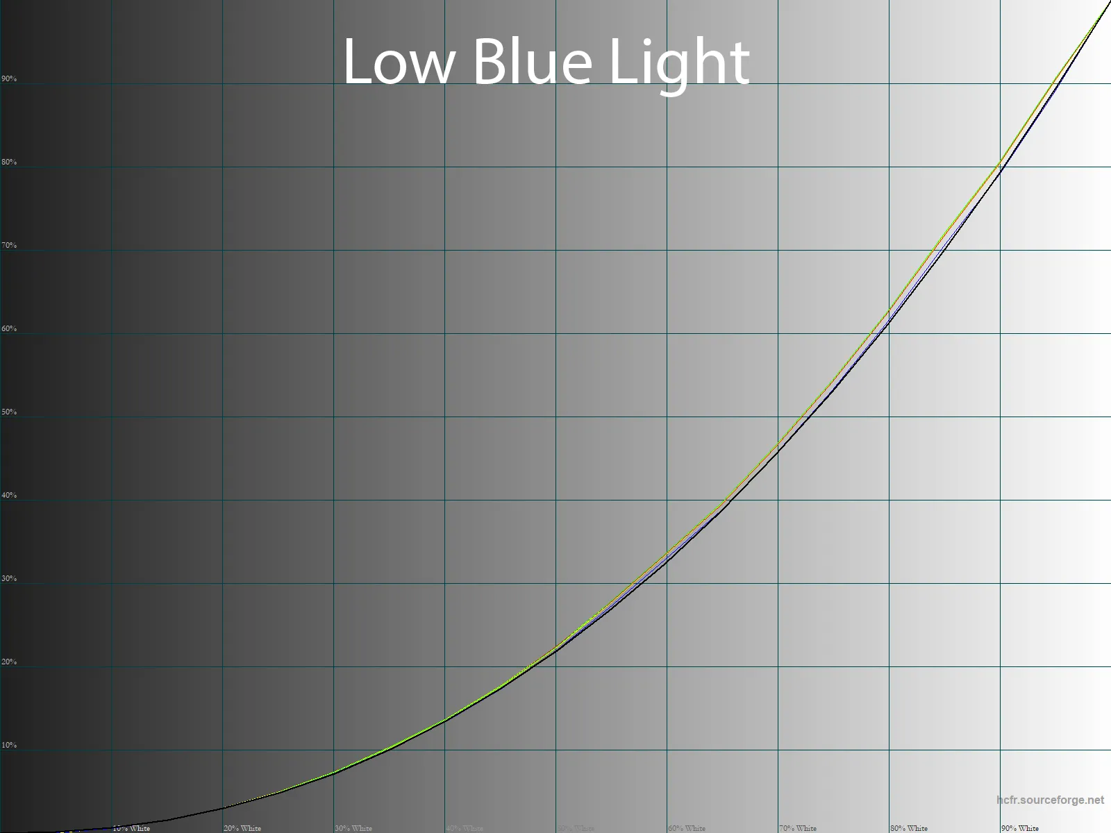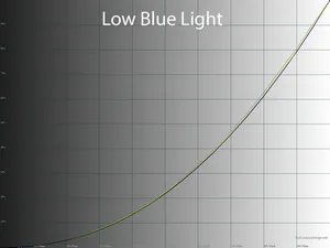 С целью снизить нагрузку на глаза производитель предлагает режим Low Blue Light. Если относится к нему в соответствии с его названием, то ничего кроме снижения синей компоненты спектра ожидать не следует. Так оно и вышло: гамма-кривые напоминают режим sRGB, контраст адекватный, различимость теней хорошая. Стабильность ЦТ оттенков серого высокая, но есть лёгкий зеленоватый паразитный оттенок. Кроме того, цветовой охват остаётся высоким (нативным для матрицы), а яркость придётся снижать вручную. По итогу, если режим и поможет вашим глазам, то только благодаря иным настройкам ЦТ. Магии здесь нет.