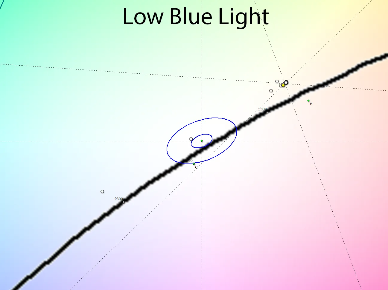 Благодаря используемой системе подсветки произведён сдвиг пика синего в более безопасную для глаз зону 456-457 нм. Это обеспечивает дополнительное снижение нагрузки на глаза совместно с отсутствием мерцания подсветки.