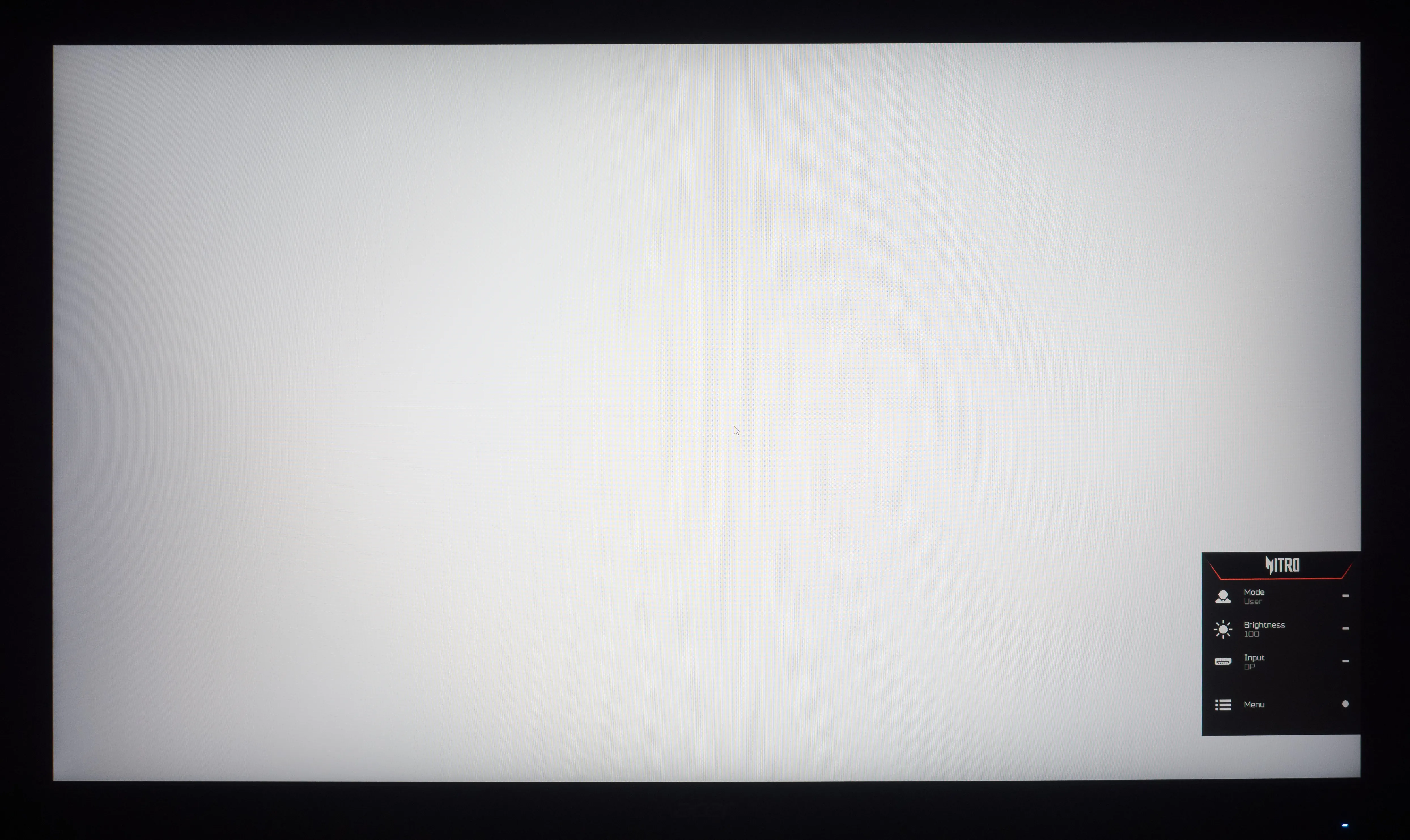 Монитор Acer Nitro XV272U F3 – тот случай, когда всё хорошо на бумаге, но далеко не так прекрасно при ближайшем рассмотрении. От любой IPS матрицы пользователи ждут хороших углов обзора и стабильности цветопередачи по всему полю экрана. Герой обзора, увы, вам предложить этого не сможет. Производитель воспользовался новой для нас матрицей от компании TPV, которая неспособна обеспечить знакомый вам по другим IPS опыт использования. Цветопередача по полю экрана плавает, четко заметен визуальный эффект виньетирования (затемнение по периферии экрана), при изменении угла просмотра даже на 10-15 градусов в любой плоскости появляются паразитные оттенки, цвета меняются на глазах. Кроме того, у модели низкая равномерность подсветки на чёрном поле (это свойство не только проверенного для данного материала экземпляра), а Glow-эффект очень сильный, с ярко выраженным паразитным оттенком – с подобным мы встречаемся крайне редко среди современных моделей игровых дисплеев.