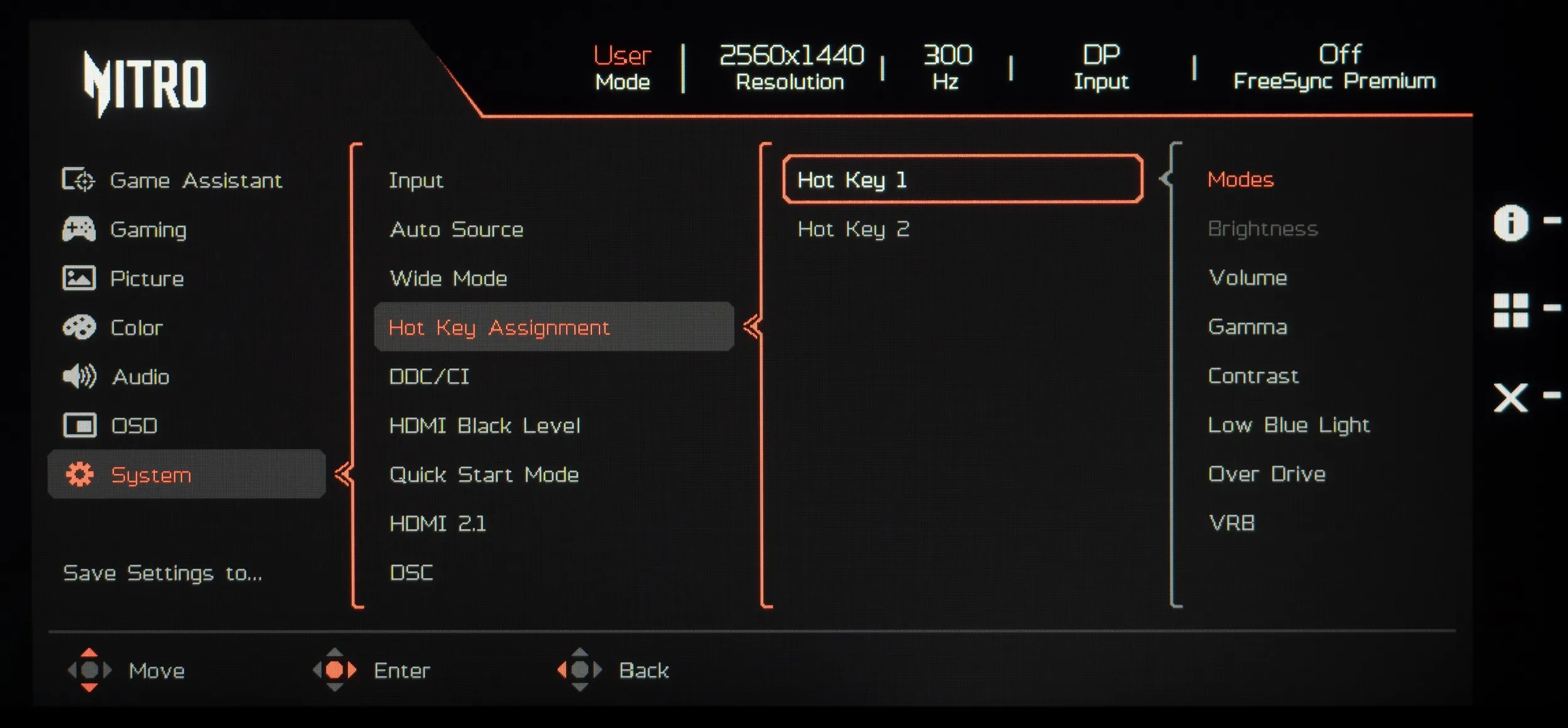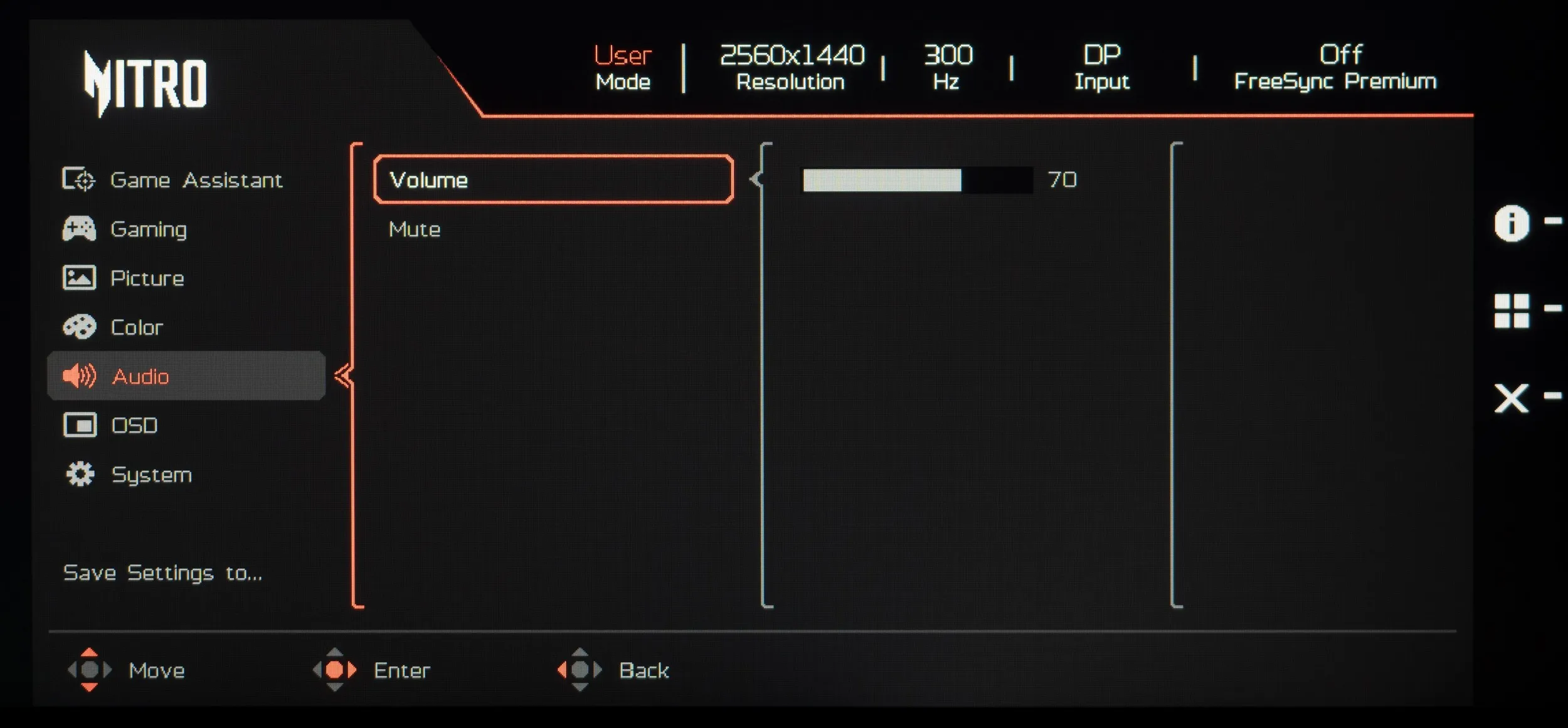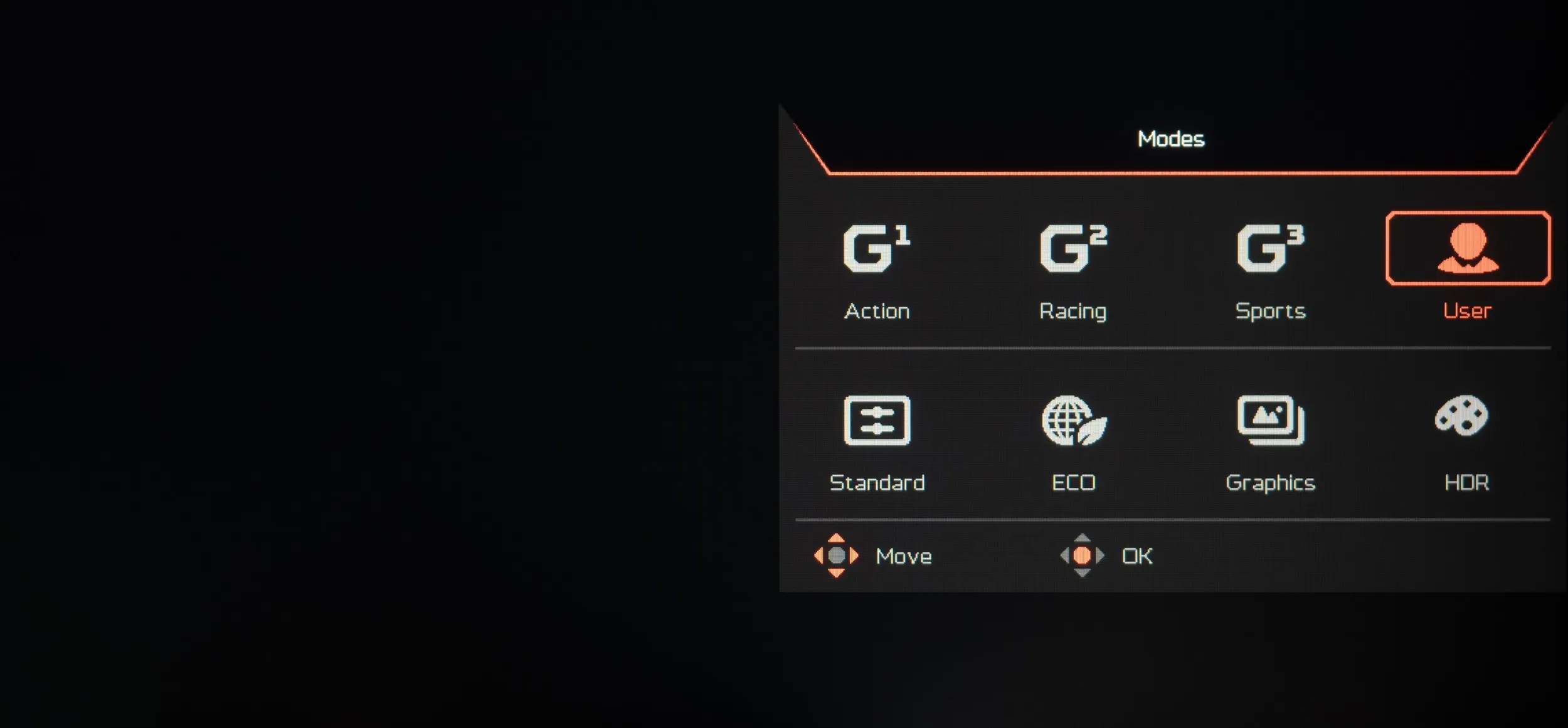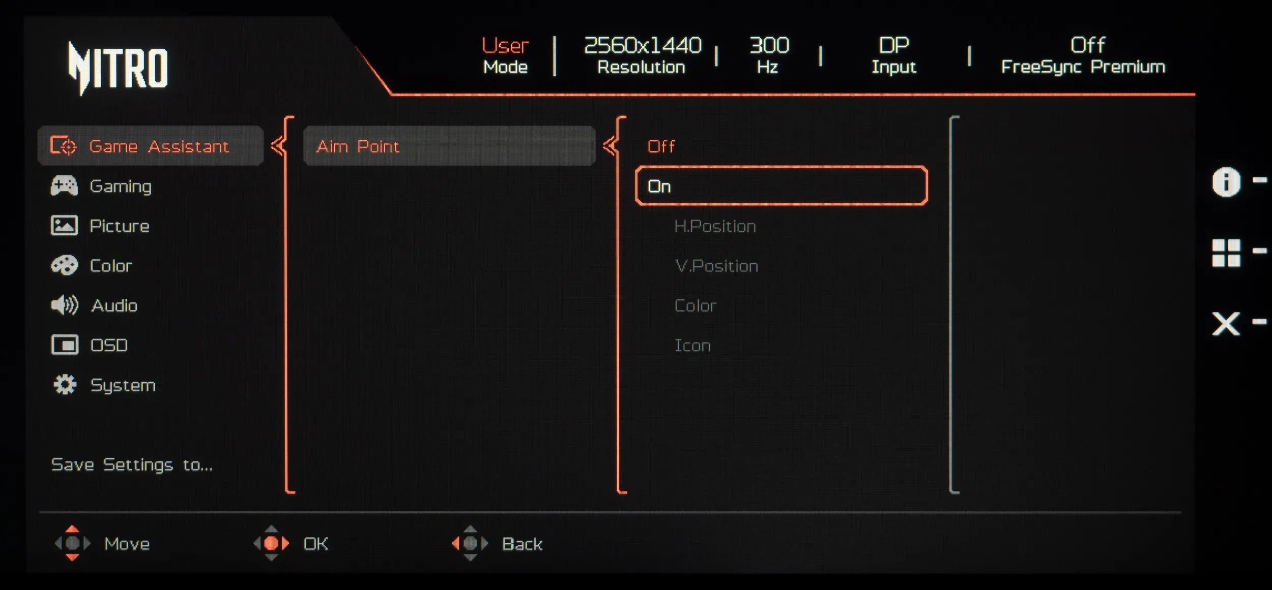 Внешний вид меню и его наполнение у Nitro XV272U F3 соответствуют тому, что можно встретить в большинстве новинок бренда: всё лаконично и строго, даже несмотря на наличие уже ставших классикой жанра красных элементов. Дизайнерами была слегка усилена глубина цвета подложки меню, добавлено больше графических элементов. Логика управления проста и понятна, а благодаря 5-позиционному джойстику навигация по меню максимально упрощена.