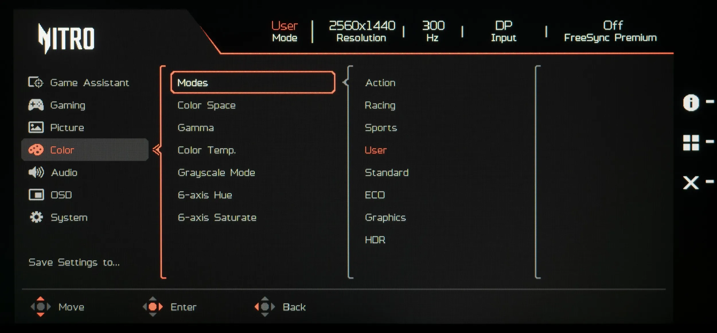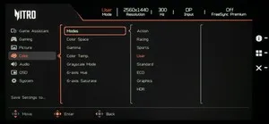 При настройках по умолчанию в мониторе Acer Nitro XV272U F3 используется режим Standard со следующими настройками: