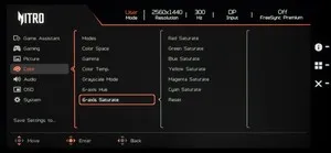 Далее следует более знакомый нам Gaming. В нём можно отрегулировать уровень разгона матрицы Over Drive (OD), активировать один из подрежимов VRB или технологию AMD FreeSync Premium (необходима и для возможности активации G-Sync Compatible), а также включить счётчик fps. Активация VRB (вставка «чёрного кадра») доступна только после выключения поддержки AMD FreeSync Premium – одновременная работа двух технологий не предусмотрена. Специальный режим Esports включает VRB (на неизвестном уровне) и меняет настройки цветопередачи, но ничего интересного и полезного от данного пресета не ждите – никаких полезных нововведений в нём нет.